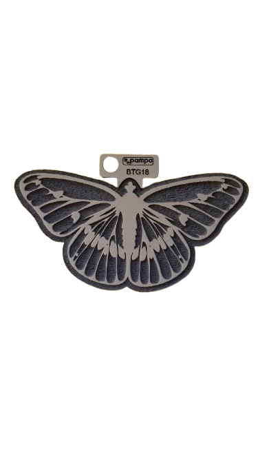 Fabricado en goma de alta densidad, este sello permite obtener impresiones claras y definidas sobre papel, cartón y otras superficies porosas. El relieve reproduce con precisión la forma de las alas y sus detalles ornamentales, logrando estampados decorativos con gran nitidez.