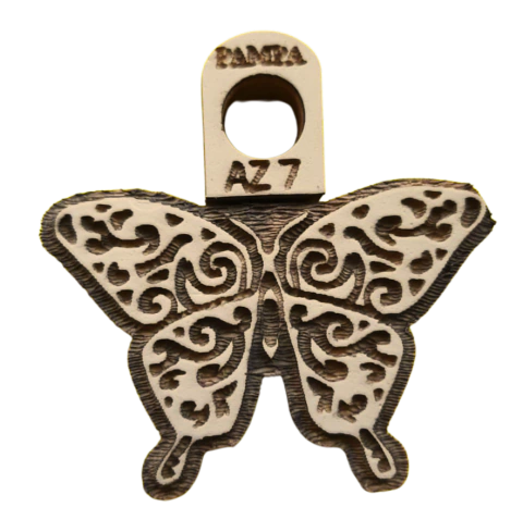 Este sello artesanal de mariposa arabesco combina delicadeza, diseño y precisión, siendo ideal para destacar tus creaciones con un estilo ornamental y sofisticado.