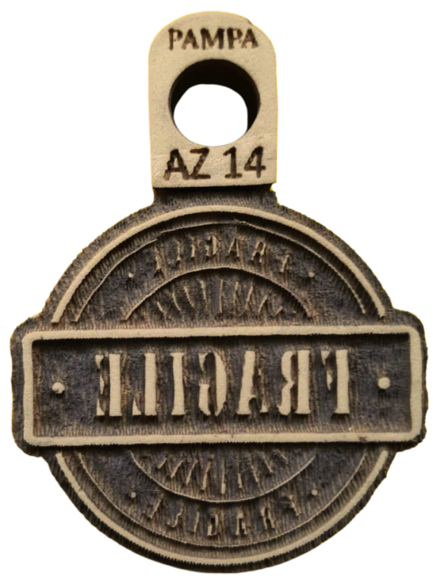 Este sello decorativo presenta una estructura circular con tipografía central y elementos gráficos que recuerdan a los antiguos sellos de carga y despacho. Su estética vintage lo convierte en una excelente opción para proyectos con identidad retro o artesanal.