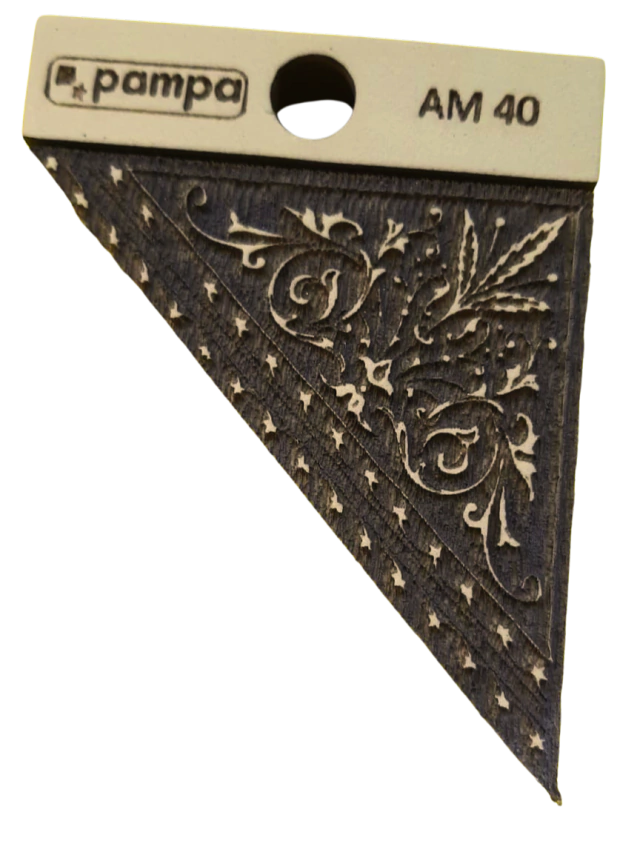 Fabricado en goma de alta densidad, este sello de goma permite obtener impresiones definidas y uniformes sobre papel, cartón y otras superficies porosas. Su relieve preciso reproduce cada detalle del adorno, logrando un acabado limpio y ornamental que realza cualquier diseño.