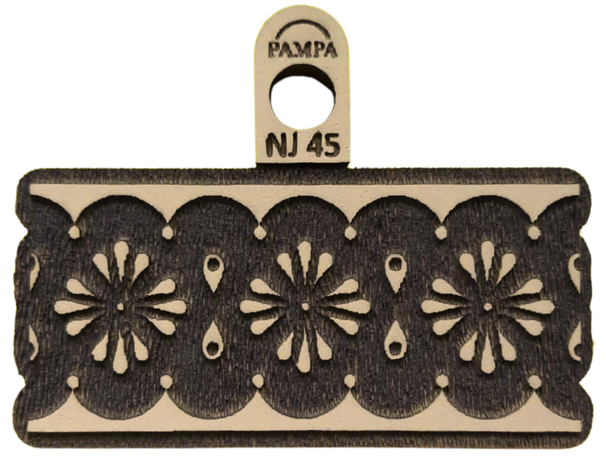 Fabricado en goma de alta densidad, este sello de goma permite obtener impresiones claras y definidas sobre papel, cartón y otras superficies porosas. El relieve reproduce con precisión cada detalle del arabesco, logrando estampados delicados y decorativos con gran calidad.