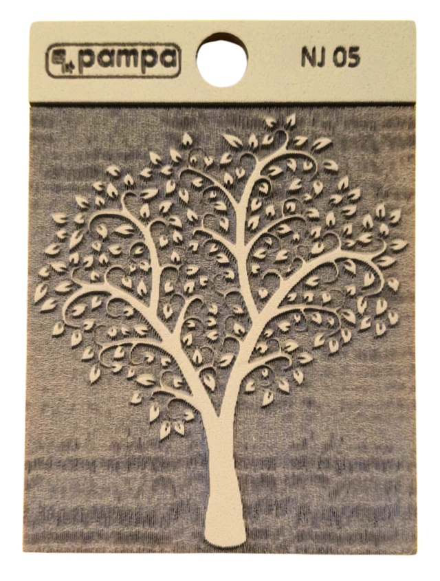 Fabricado en goma de alta densidad, este sello de goma permite lograr impresiones definidas y uniformes sobre papel, cartón y otras superficies porosas. Su relieve preciso reproduce la silueta del árbol con claridad, creando un resultado limpio y atractivo en cada estampado.