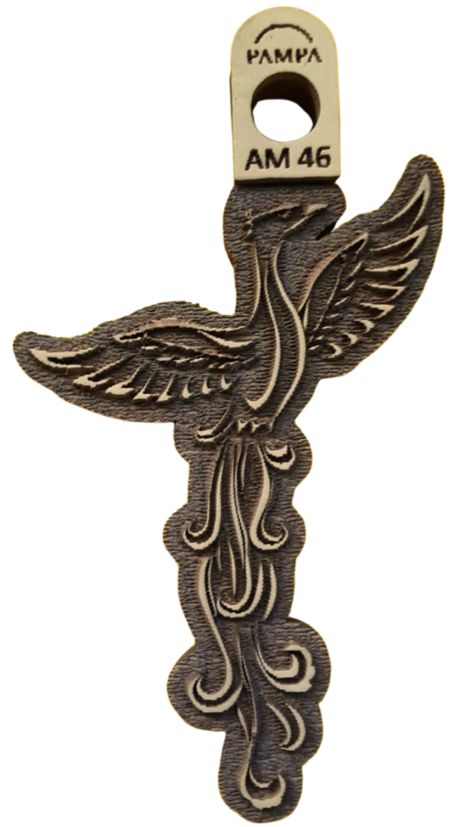 Fabricado en goma de alta densidad, este sello de goma permite obtener impresiones definidas y uniformes sobre papel, cartón y otras superficies porosas. Gracias a su relieve preciso, cada detalle del ave y sus plumas se reproduce con claridad, logrando un acabado limpio y decorativo.