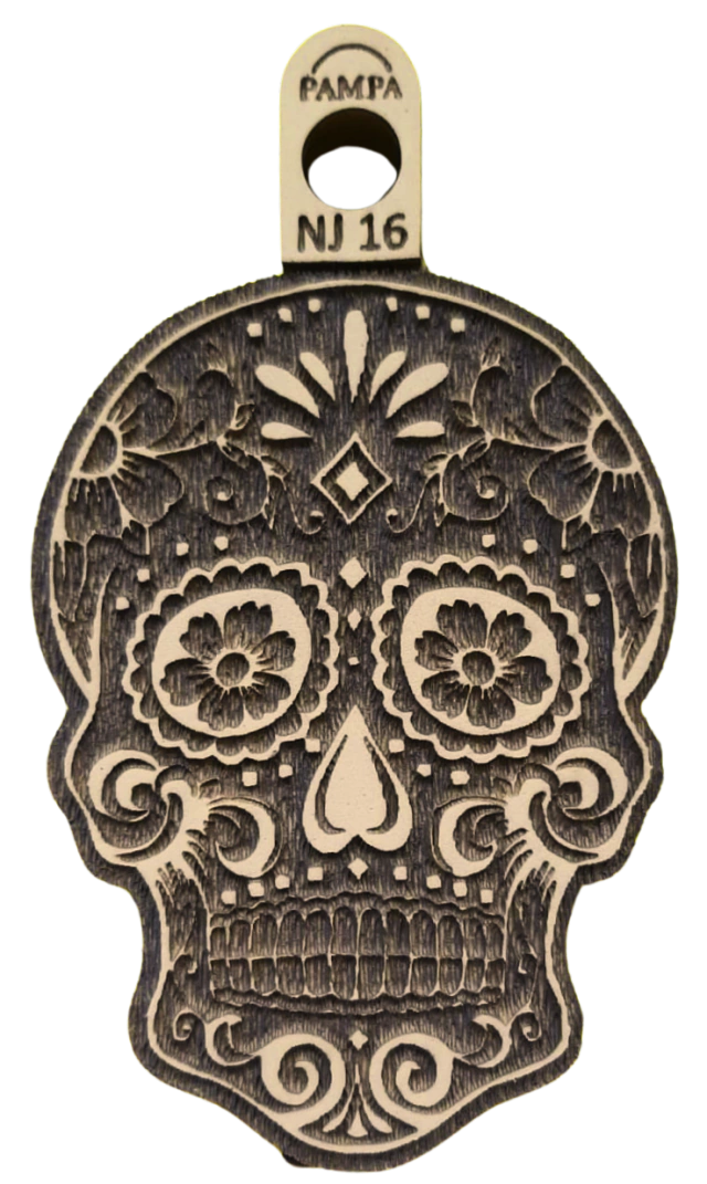 Fabricado en goma de alta densidad, este sello de goma permite obtener impresiones definidas y uniformes sobre papel, cartón y otras superficies porosas. Su relieve reproduce con precisión los detalles de la calavera, logrando un estampado decorativo claro y con gran impacto visual.
