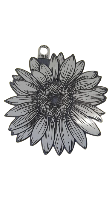 Fabricado en goma de alta densidad, este sello permite obtener impresiones claras y definidas sobre papel, cartón y otras superficies porosas. El relieve reproduce con precisión los pétalos y el centro del girasol, logrando estampados decorativos con gran nitidez.
