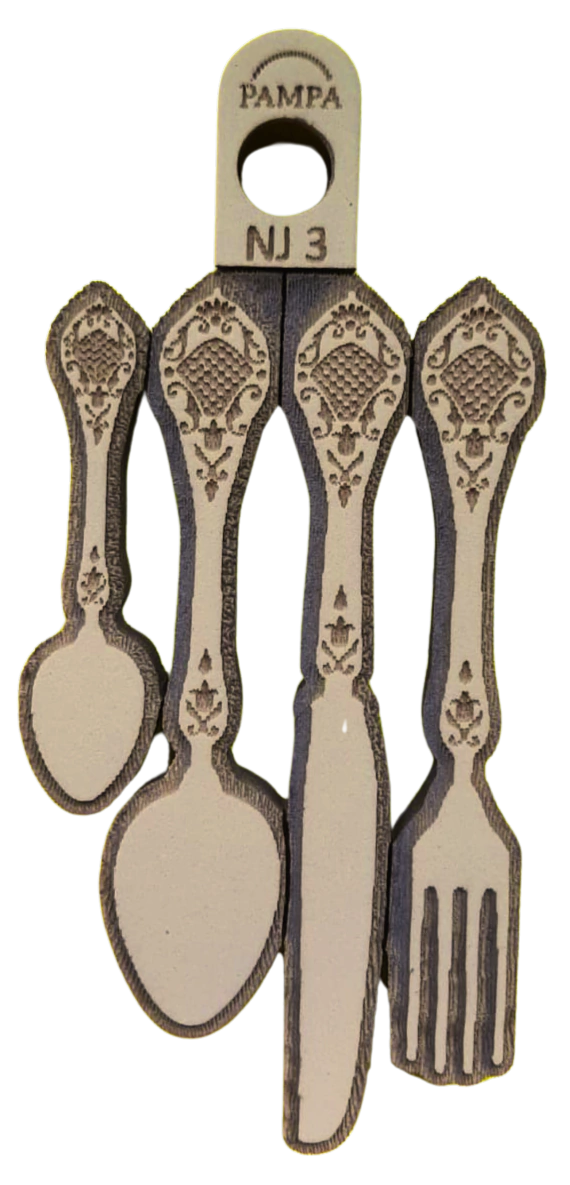 Fabricado en goma de alta densidad, este sello de goma permite lograr impresiones definidas y uniformes sobre papel, cartón y otras superficies porosas. Su relieve preciso reproduce claramente la forma de los cubiertos, creando un resultado visual limpio y decorativo.