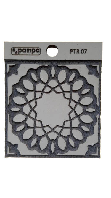 Fabricado en goma de alta densidad, el sello permite obtener estampados nítidos que destacan cada detalle del diseño geométrico.