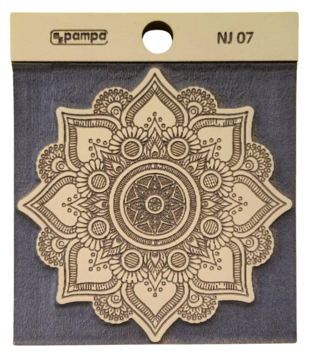 Fabricado en goma de alta densidad, este sello de goma permite obtener impresiones claras y definidas sobre papel, cartón y otras superficies porosas. Su relieve reproduce con precisión cada línea del mandala, logrando estampados decorativos uniformes y de gran impacto visual.
