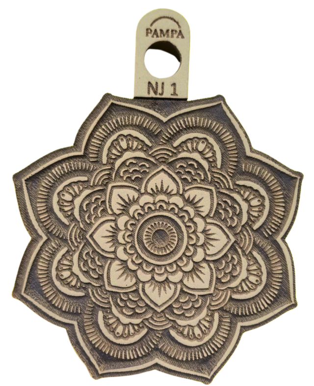 Fabricado en goma de alta densidad, este sello de goma permite obtener impresiones definidas y uniformes sobre papel, cartón y otras superficies porosas. Su relieve preciso reproduce cada línea y detalle del mandala, logrando un acabado decorativo limpio y atractivo.