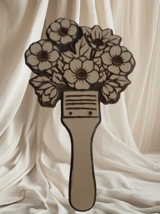 Fabricado en goma de alta densidad, este sello permite obtener impresiones claras y definidas sobre papel, cartón y otras superficies porosas. El relieve reproduce con precisión los detalles del pincel y los pétalos de las flores, logrando estampados nítidos y decorativos.