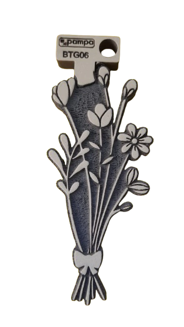Fabricado en goma de alta densidad, este sello permite obtener impresiones claras y definidas sobre papel, cartón y otras superficies porosas. El relieve reproduce con precisión los pétalos, hojas y detalles del ramillete, logrando estampados decorativos con gran nitidez.