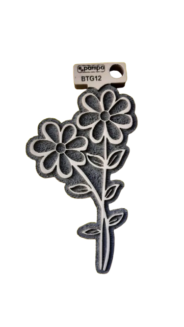 Fabricado en goma de alta densidad, este sello permite obtener impresiones claras y definidas sobre papel, cartón y otras superficies porosas. El relieve reproduce con precisión los pétalos, hojas y detalles del ramillete, logrando estampados decorativos con gran nitidez.